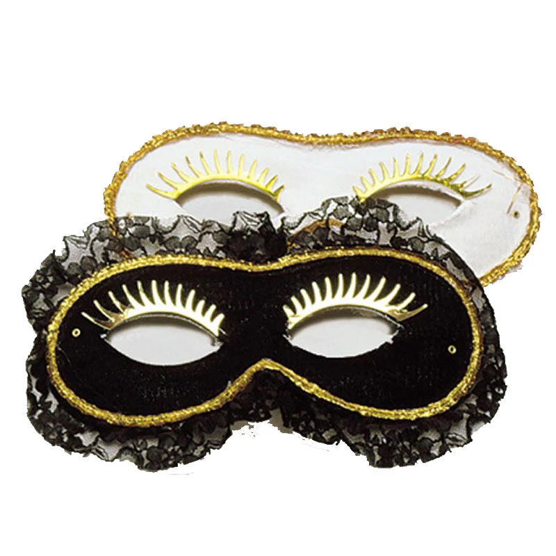 Sencillo pero vistoso antifaz de raso con puntillas disponible en dos colores. Ideal para fiestas de disfraces temáticas o regalo-detalle en bodas y photocalls. Cualquier celebración que se precie deberá contar con complementos y accesorios de disfraz originales y llamativos y este antifaz puede ser una gran opción.