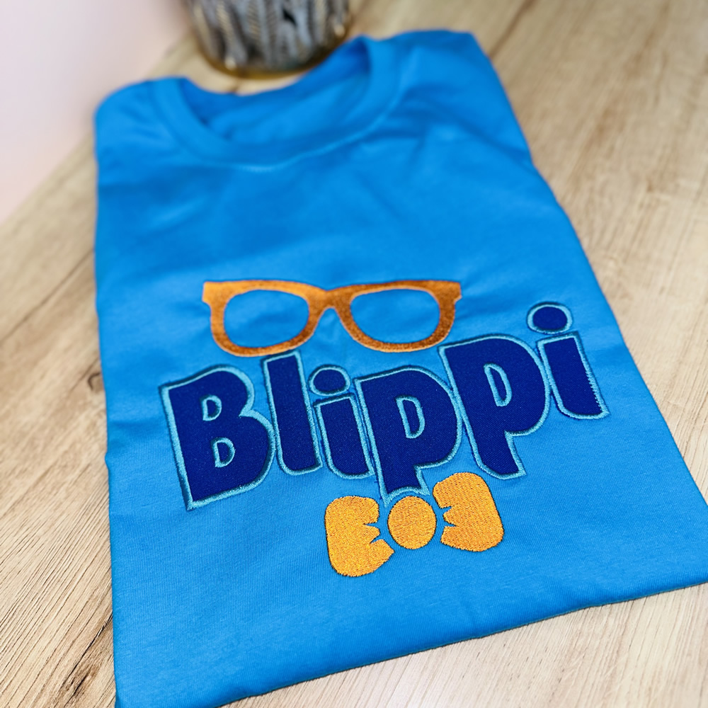Camiseta Bordada con aplique 100% algodón con diseño de Blippi.