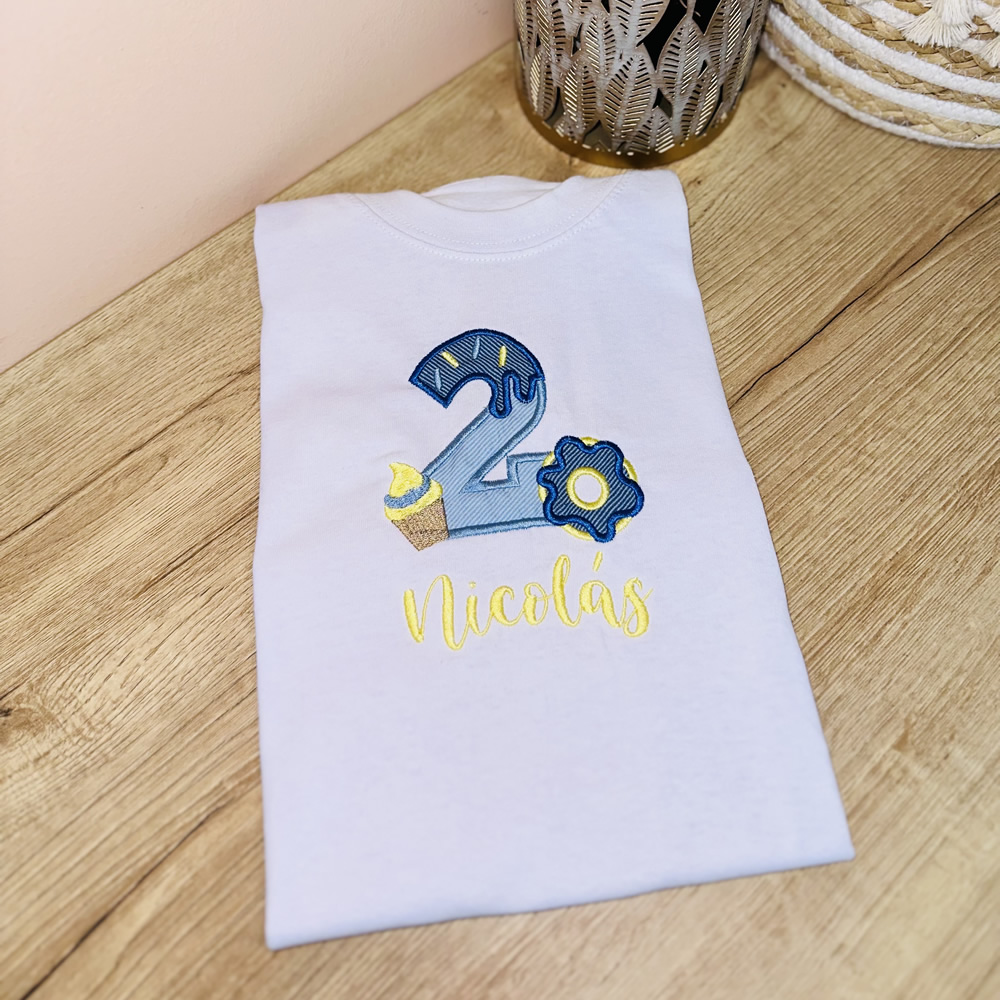Camiseta 100% algodón personalizada con Aplique, desde la talla 2 hasta la talla 14.