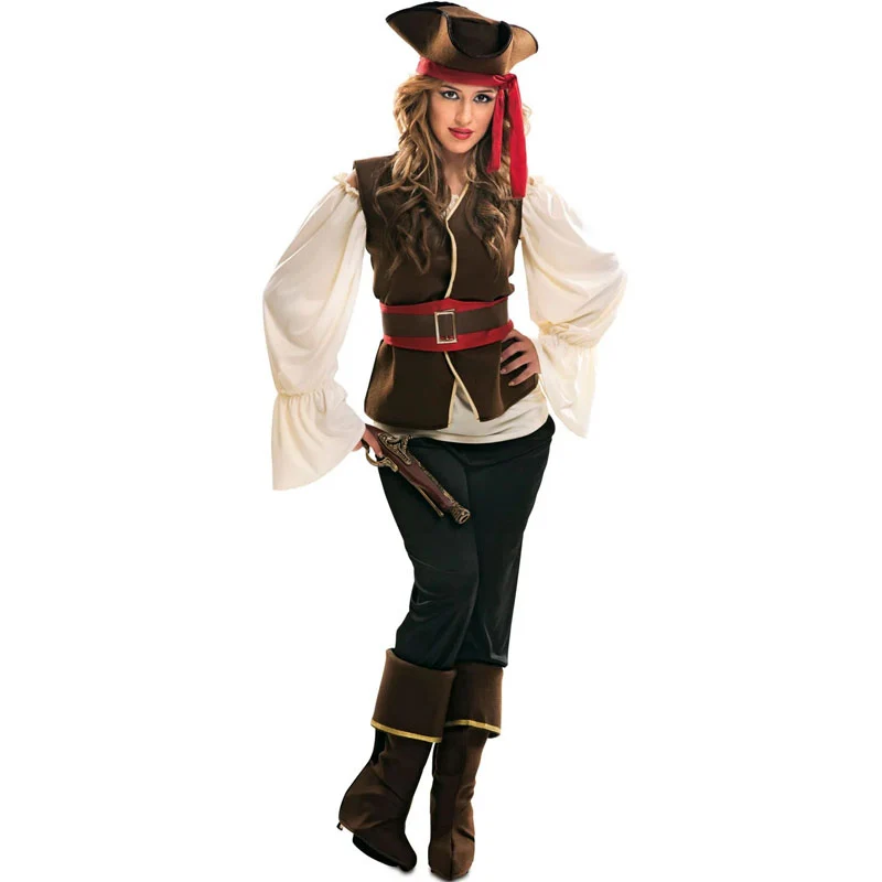 Conviértete en una llamativa Bucanera de los mares de forma sencilla usando este nuevo disfraz original para mujeres. No pasarás desapercibida disfrazándote como una pirata Bucanera con este traje de Carnaval femenino talla adulto que contiene Sombrero, camisa, chaleco, cinturón, pantalones y cubrebotas y está disponible en 3 talla diferentes. Este nuevo traje de Bucanera de mujer es ideal para lucirlo en tu próxima fiesta de disfraces o noche temática y forma parte de nuestro extenso catálogo de disfraces de Carnaval para mujeres.