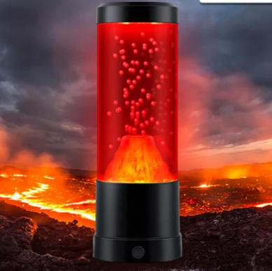 Lámpara con temática de volcán, tiene un efecto que imita la lava en erupción con bolitas rojas. Su diseño elegante y compacto es perfecto para agregar un toque de estilo y relajación a cualquier habitación. Ideal para crear un ambiente acogedor y visualmente atractivo.