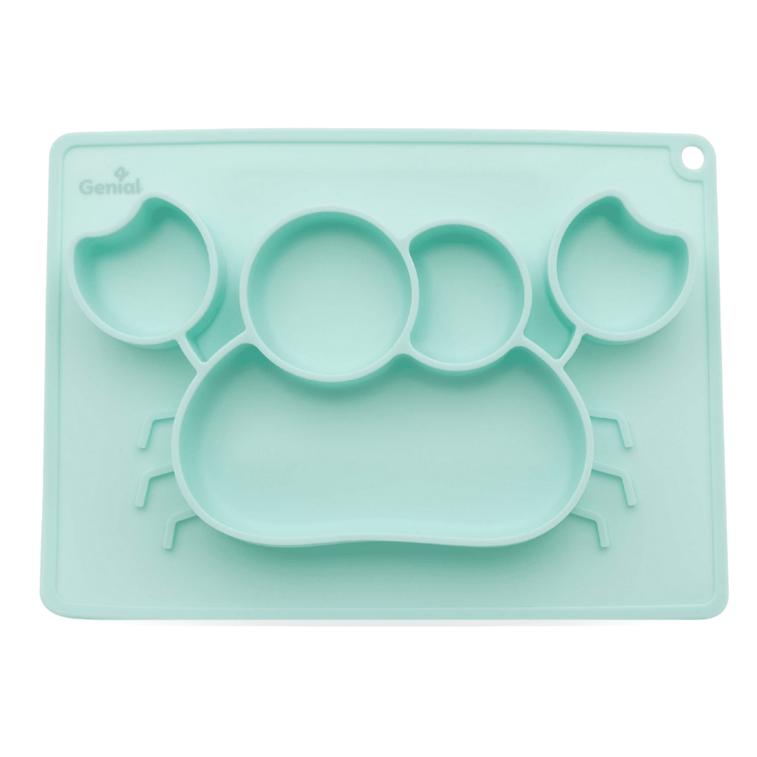 Plato de silicona, se adhiere a superficies planas, antiderrames, varios colores, forma de cangrejo, libre de tóxicos.