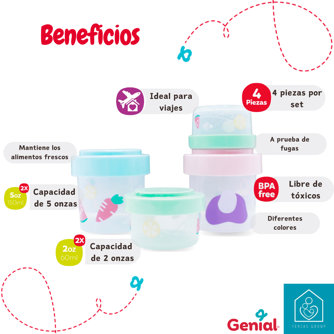 Ideal para viajes, mantiene los alimentos frescos, a prueba de fugas, diferentes colores, 4 piezas por set, capacidad de 2onzas x2, capacidad de 5onzas x2