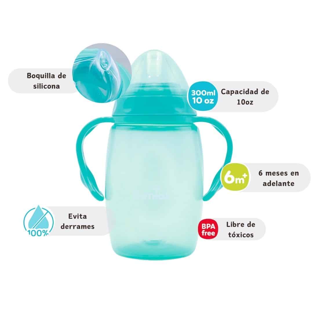 Boquilla de silicona, capacidad de 10 Oz, 6 meses en adelante, evita derrames, con asas, libre de tóxicos