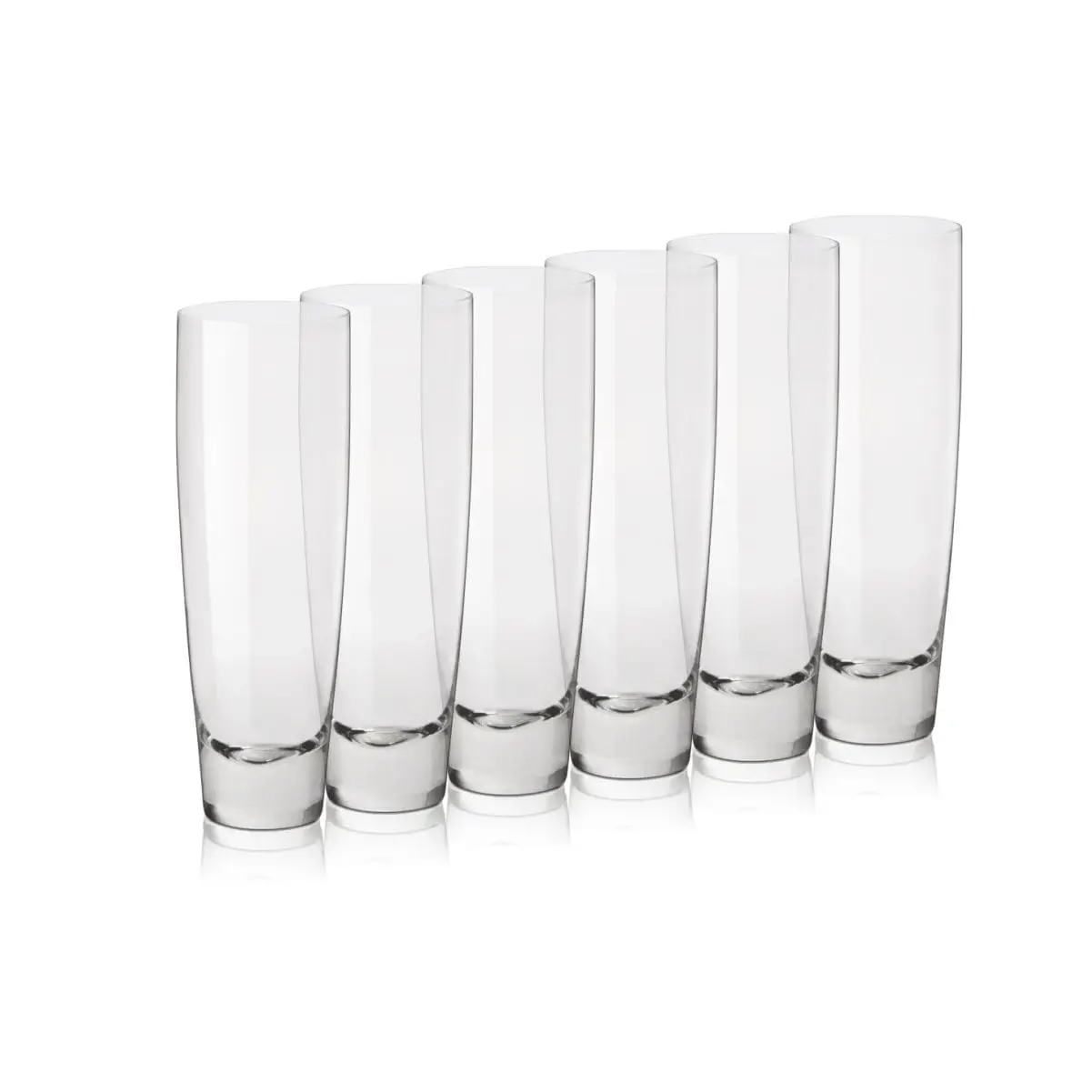 Su forma alargada y fina lo convierten en un vaso moderno y refinado que lo diferencian de los vasos de trago largo tradicionales.