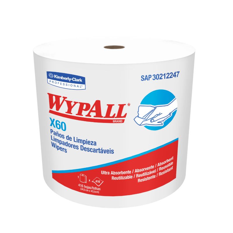 El paño WypAll® X60 multiusos recomendado para para limpieza general. Rollo Jumbo en color blanco, con pre-corte de 890 paños. Disposición Final: Una vez usado el paño, la clasificación del tipo de residuo depende del contaminte que se remueve. La disposi